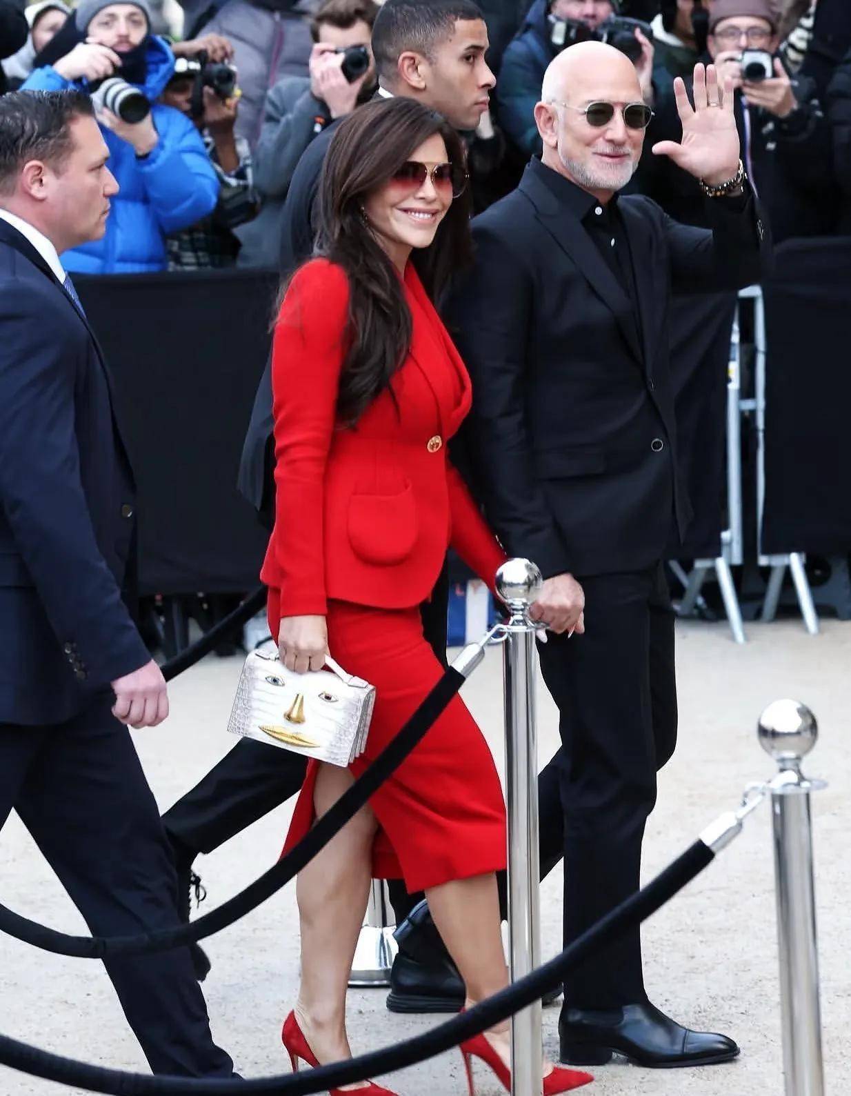 而在所有来宾中,最牵动媒体神经的当属杰夫·贝佐斯与劳伦·桑切斯夫妇。这对备受瞩目的新晋名流组合已是巴黎高定周常客,而此次系二人完婚后的首次联合亮相,现场阵仗空前盛大,着装考究至极,尽显顶级富豪夫妇的从容格调。